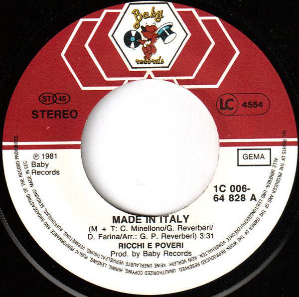 Ricchi E Poveri - Made In Italy (7", Single)