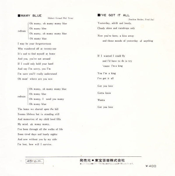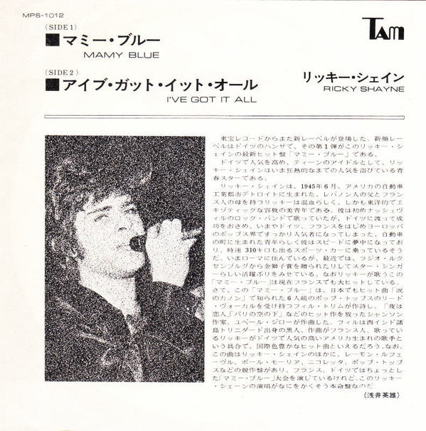 Ricky Shayne - マミー・ブルー Mamy Blue / アイブ・ガット・イツト・オール I've Got It All (7", Single)
