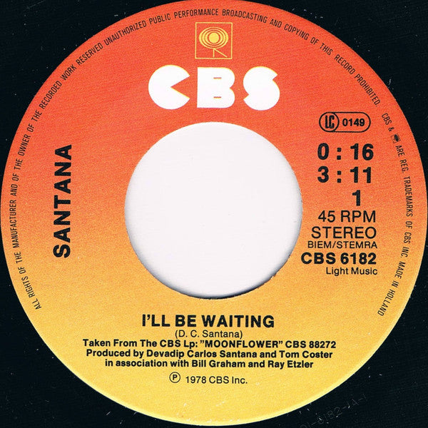 Santana - I'll Be Waiting (7", Single)
