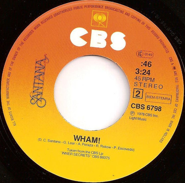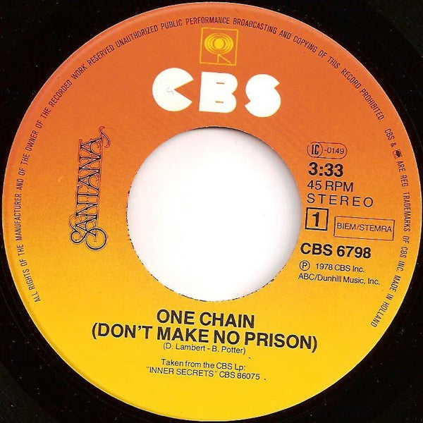 Santana - One Chain (Don't Make No Prison) / Wham! (7", Single)