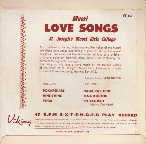 St. Joseph's Maori Girls College Choir - Maori Love Songs (7", EP)