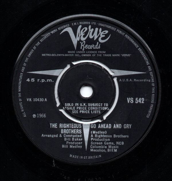 The Righteous Brothers - Go Ahead And Cry (7", Single)