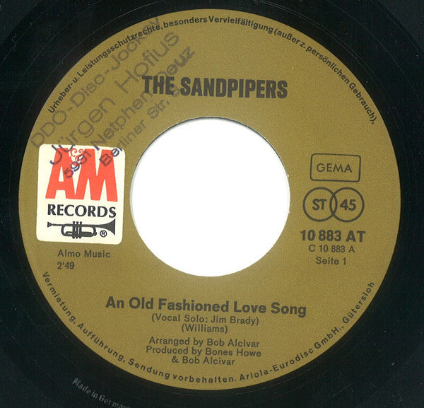 The Sandpipers - An Old Fashioned Love Song (7", Single)