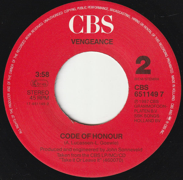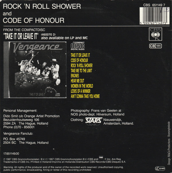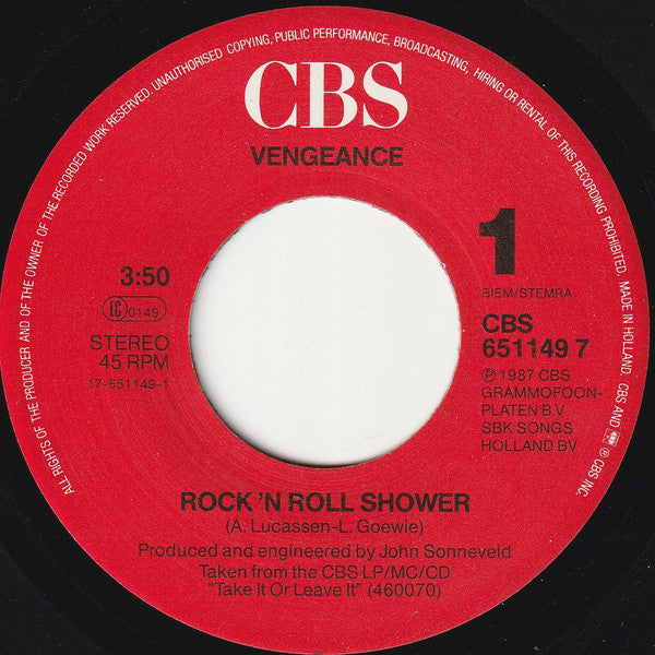 Vengeance - Rock 'n Roll Shower (7", Single, Sin)