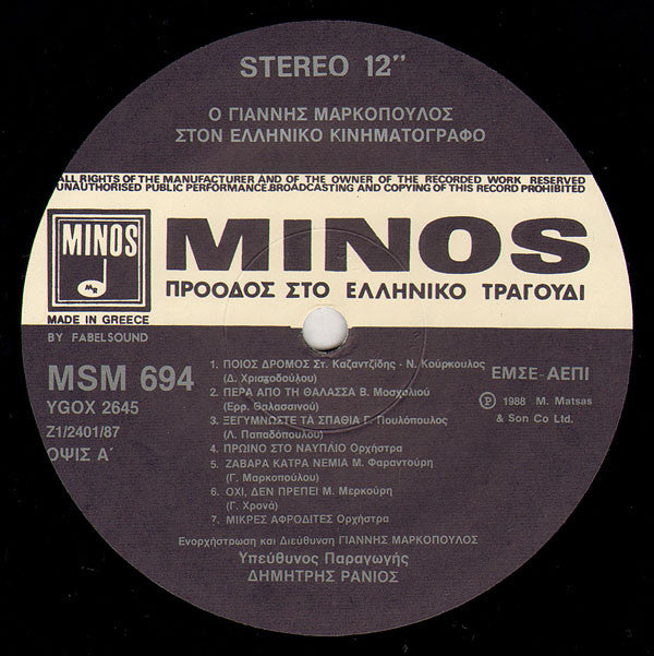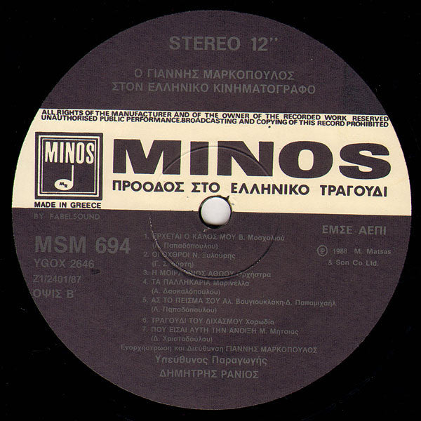 Phonographic Copyright (p) Minos Matsas & Son Co. Ltd.