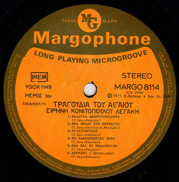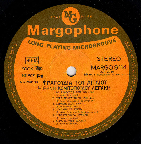 Ειρήνη Κονιτοπούλου-Λεγάκη - Τραγούδια Του Αιγαίου (LP, Comp)