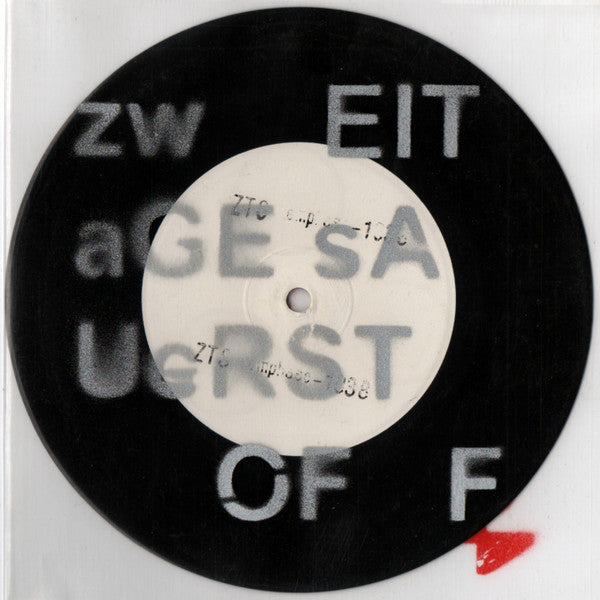 On this split 7", the Cologne trio Zwei Tage Sauerstoff sits opposite the Berlin quartet 40 Sekunden Ohne Gewicht. On one side, hear driving industrial electronics by Zwei Tage Sauerstoff and on the other hear the laid-back improvized dub of 40 Sekunden Ohne Gewicht. Zwei Tage Sauerstoff cast their rough and noisy steel percussions over dub undertones, basing their sounds on metalic sound samples; imagine one thin sheet of metal whapped hard by a brick, and the samples from it formed into grooves and dub beats. By contrast, 40 Sek's track OT is an extract from a live-recording made at Berlin's famed house of experimental sounds, Podewil. OT builds up slowly, culminating in dense vocal sampling and thickly layered electro noises. 40 Sekunden member Dirk Specht also penned the 1,5 Farfisa piece for the the ONE series.