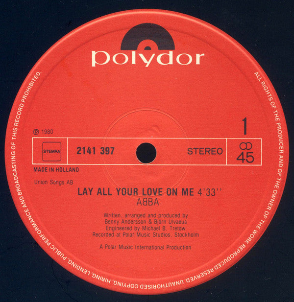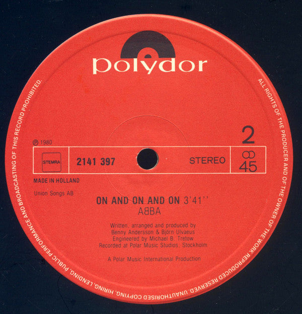 A. Lay All Your Love On Me 4:33B. On And On And On 3:41