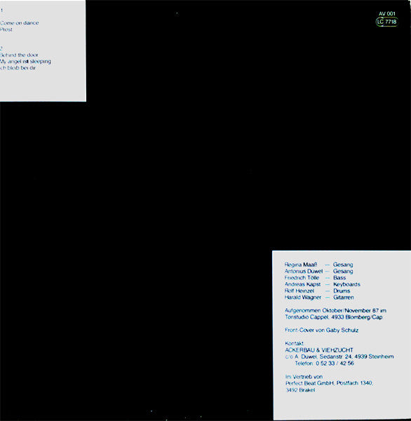 Recorded october/november 87 at Tonstudio Cappel, 4933 Blomberg/Cap. Distributed by Perfect Beat GmbH, 3492 Brakel.
