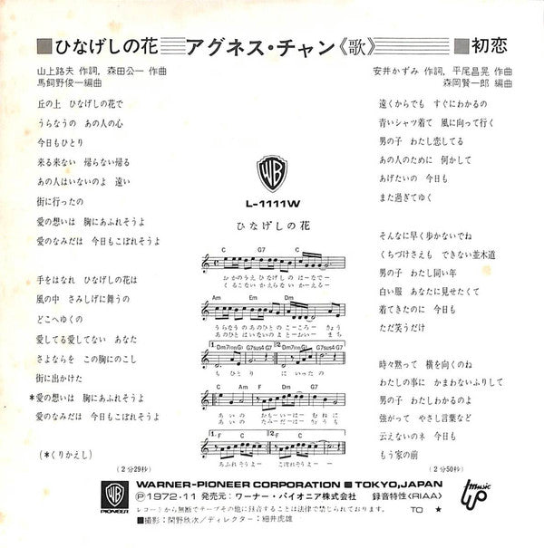 Agnes Chan = Agnes Chan - ひなげしの花 (7", Single)