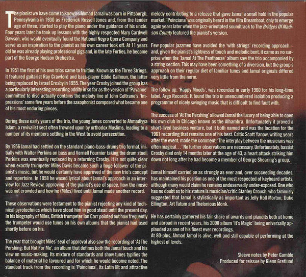 Recorded at Ahmad Jamal's Alhambra, Chicago, IL, June 1961.
