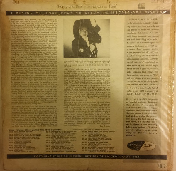 Al D'Artega Conducting The Royal Farnsworth Orchestra , Music Of George Gershwin Piano Soloist Suzanne Auber Arranged By Robert Russell Bennett - American In Paris / Porgy And Bess (LP, Album)