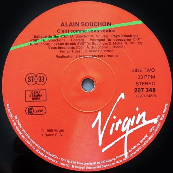 Alain Souchon - C'est Comme Vous Voulez. (LP, Album)