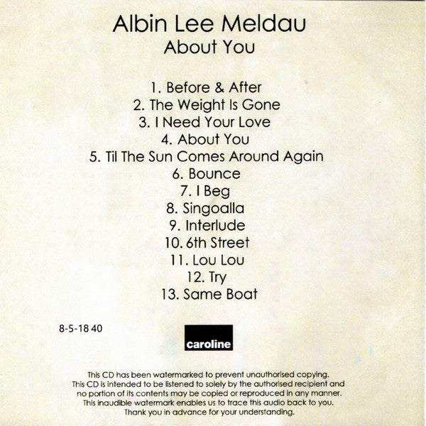 Albin Lee Meldau - About You (CDr, Album, Num, Promo)