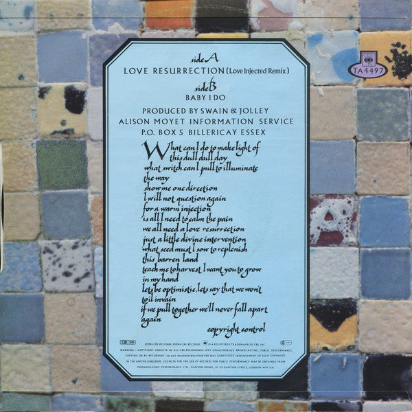 "Love Resurrection (Love Injected Remix)" on sleeve; "Love Resurrection (Long Version)" on label.