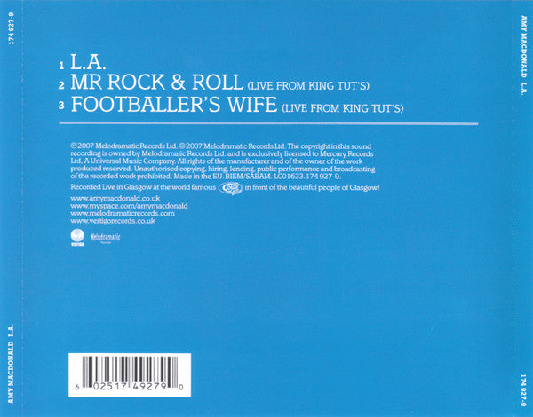 Mr Rock & Roll (track 2) and Footballer's Wife (Track 3) recorded live in Glasgow at the world famous King Tut's in front of the beautiful people of Glasgow