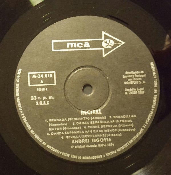 Andrés Segovia - Recital (LP, Album, Mono, RE)