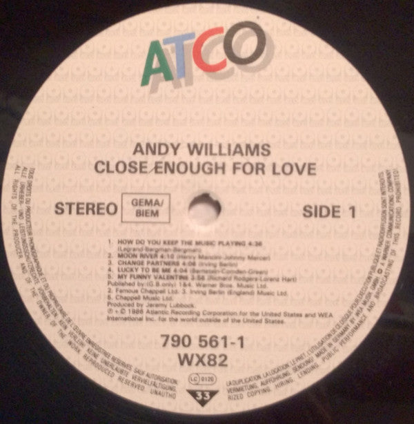 A1. How Do You Keep The Music Playing A2. Moon River A3. Change Partners A4. Lucky To Be Me A5. My Funny Valentine B1. The Days Of Wine And Roses B2. Through The Eyes Of Love B3. Close Enough For Love B4. The Music Of Goodbye B5. 'Round Midnight