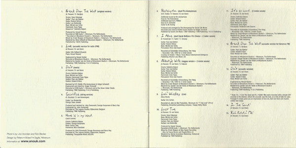 Track 14 & 15 : "recorded with a simple DAT recorder in the kitchen, where the acoustic was the best, at a villa at Valle de Lobo, Portugal. It simply gives you an impression of how we, Bart van Veen and [Anouk, create new songs."