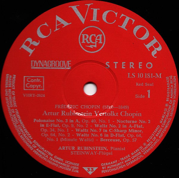 Main title as on sleeve, title on labels is "Artur Rubinstein vertolkt Chopin".