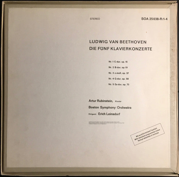 Arthur Rubinstein spielt Ludwig van Beethoven - Die 5 Klavierkonzerte (4xLP + Box, Comp)