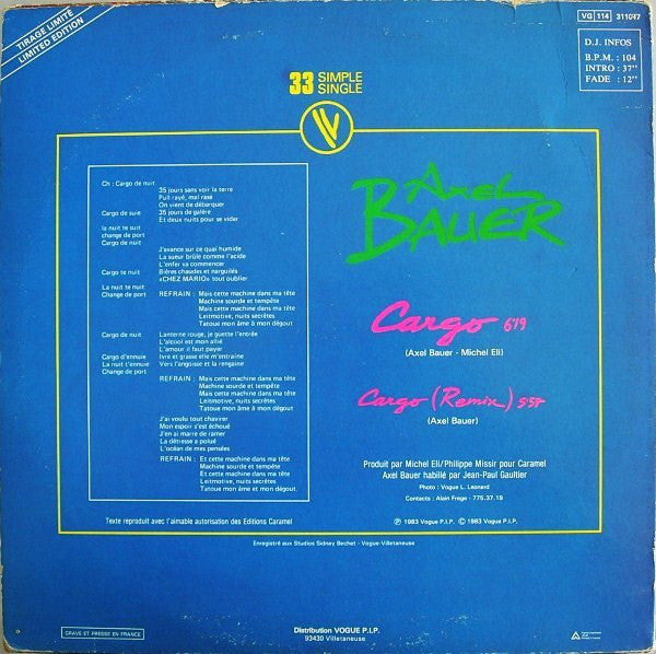 Enregistré aux Studios Sidney Bechet - Vogue-Villetaneuse