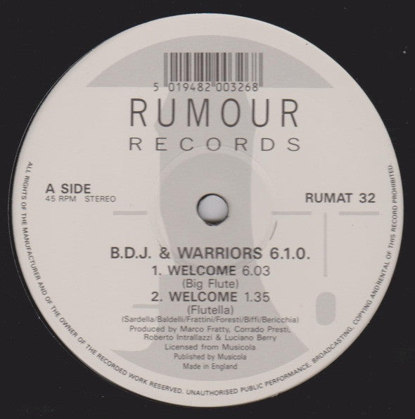 B.D.J. & Warriors 6.1.0. - Welcome (12")