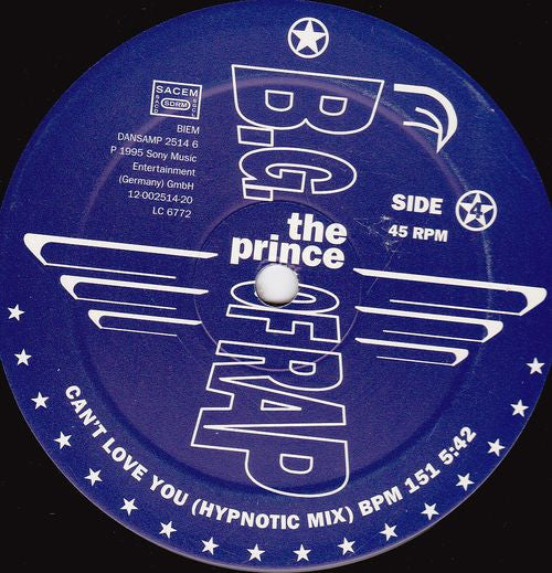 B.G. The Prince Of Rap - Can't Love You (2x12", Promo)