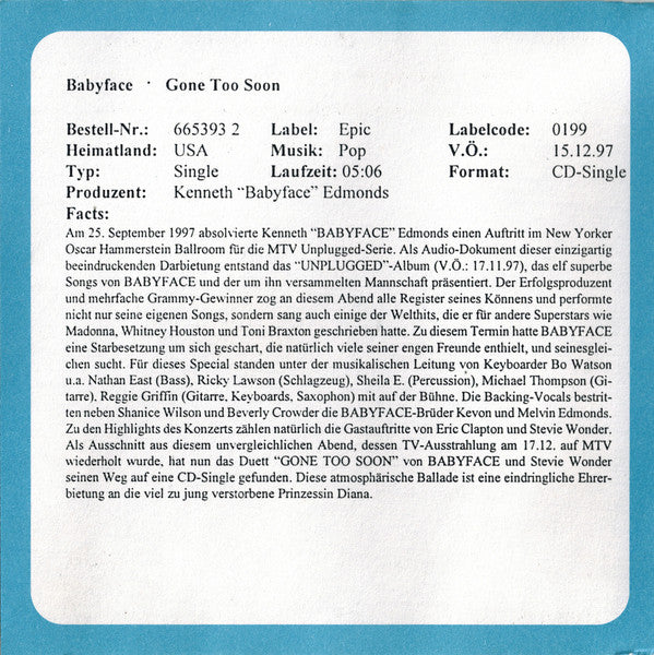 Tracks 1&2: Taken from the album "BABYFACE UNPLUGGED NYC 1997"