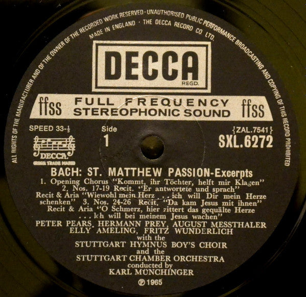 Recorded At Schloss Ludwigsburg Mastered At Decca Studios Pressed By Decca Record Co. Ltd., Pressing Plant, UK. Printed By James Upton Ltd. Made By The Decca Record Company Limited Copyright (c) The Decca Record Company Limited