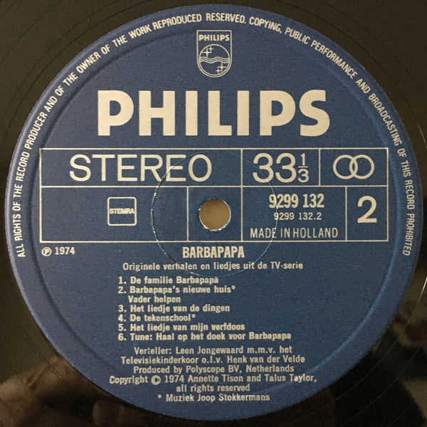 "A creation of Annette Tison and Talus Taylor." ⓟ1974 ⓒ1974 M.m.v. het televisiekinderkoor o.l.v. Henk van der Velde.