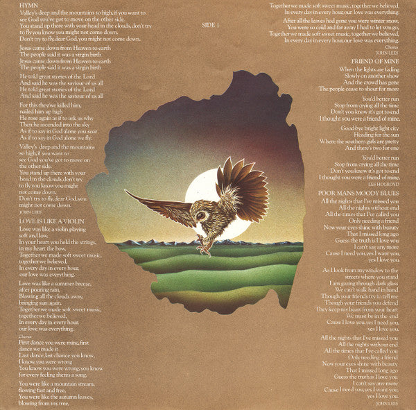 Die-cut cover with printed inner sleeve. The owl with the background landscape you see on the cover picture is actually on the inner sleeve and can be reversed to show sunset picture.