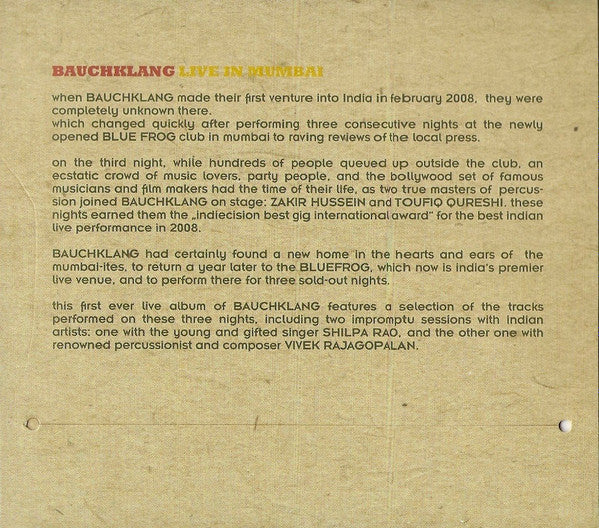Recorded live in Mumbai / India @ Blue Frog / January 2009 6-panel clear tray digipak packaging with 12-page booklet