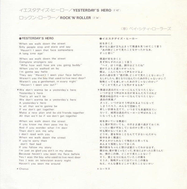 Bay City Rollers - Yesterday's Hero / Rock'N' Roller (7", Single)