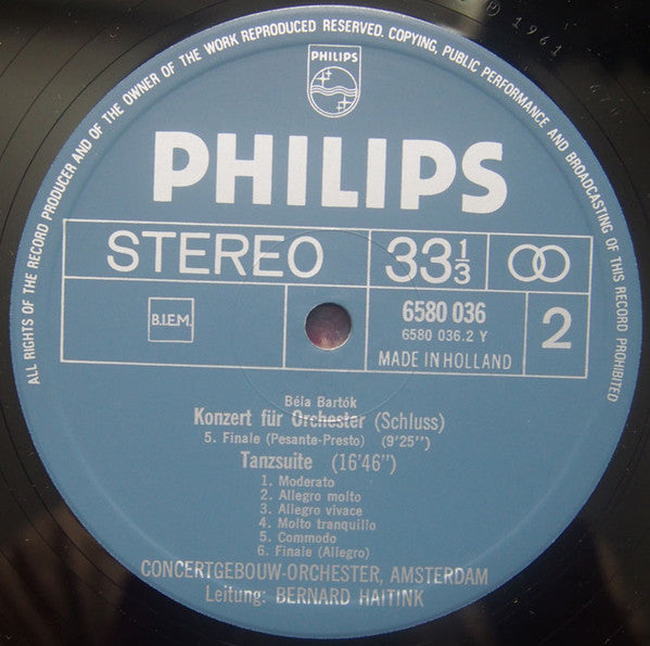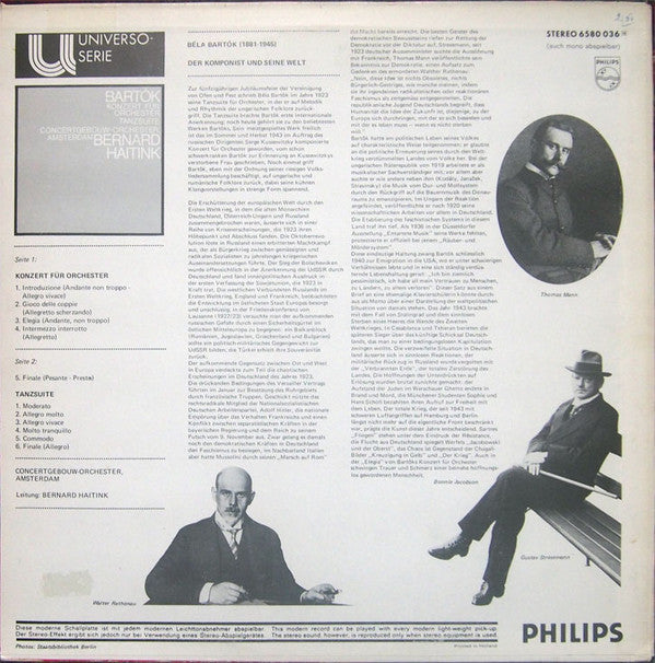 Béla Bartók ; Concertgebouworkest, Bernard Haitink - Konzert Für Orchester / Tanzsuite (LP, Album, RE)