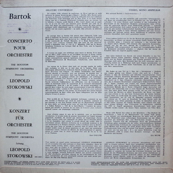 Béla Bartók, Houston Symphony Orchestra, Leopold Stokowski - Concerto For Orchestra (LP, Album)