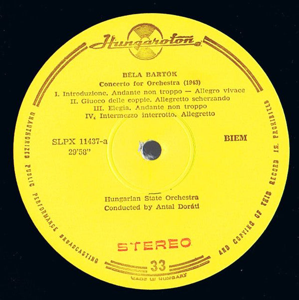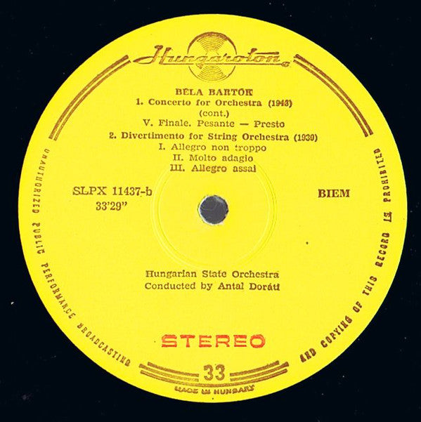 Béla Bartók, Hungarian State Orchestra Conducted By Antal Dorati - Concerto For Orchestra / Divertimento (LP)