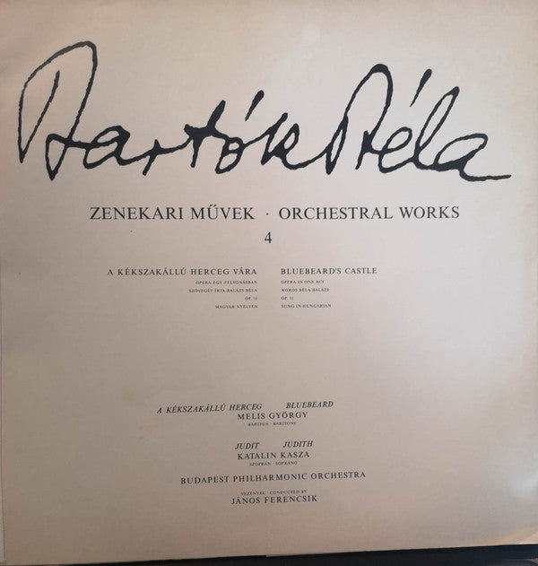 Béla Bartók, Katalin Kasza, Melis György, The Budapest Philharmonic Orchestra Conducted By János Ferencsik - Bluebeard's Castle (Opera In One Act) Op. 11 (LP)