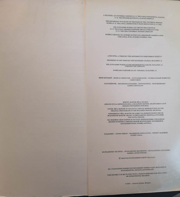 Gatefold sleeve with 36-page b/w full-size booklet. Liner notes and libretto in Hungarian, English, German and Russian.