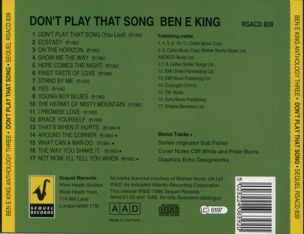 Ben E. King - Don't Play That Song! (CD, Album, Comp, RM)
