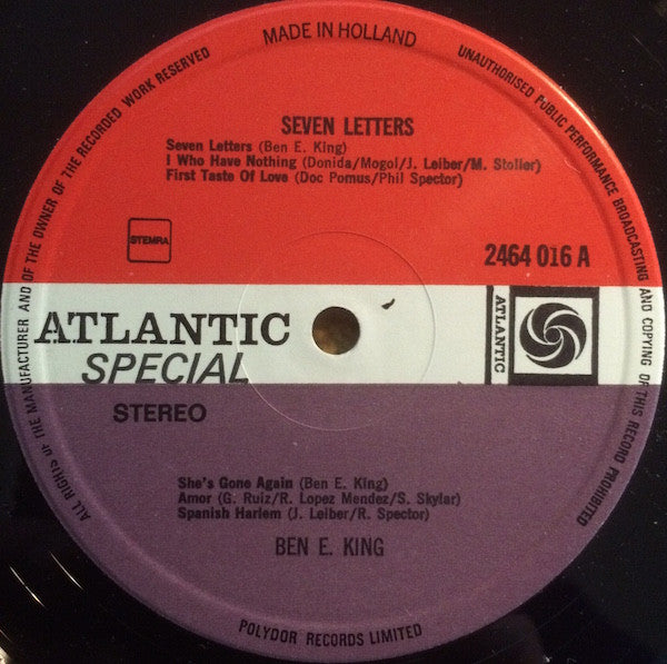A1. Seven Letters A2. I (Who Have Nothing) A3. First Taste Of Love A4. She's Gone Again A5. Amor A6. Spanish Harlem B1. What Is Soul B2. Don't Take Your Love From Me B3. (There's) No Place To Hide B4. Stand By Me B5. River Of Tears B6. Don't Play That Song