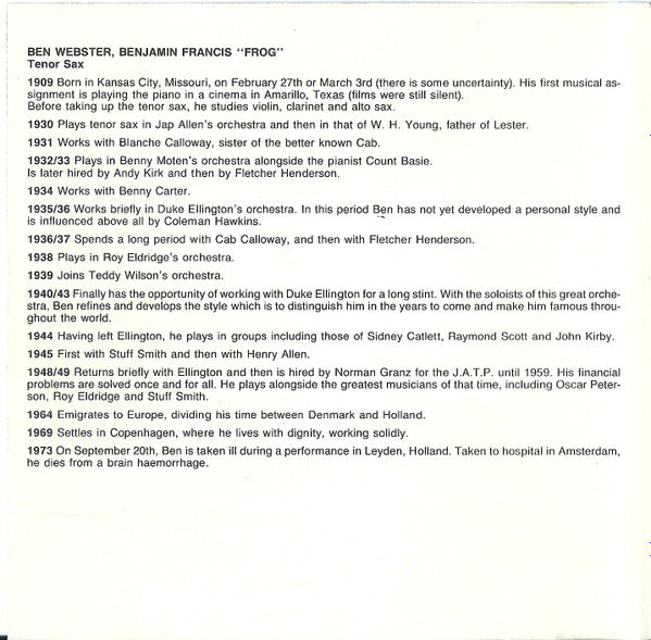 12. Ben Webster - Did You Call Her Today 8:56