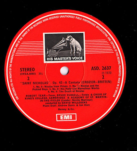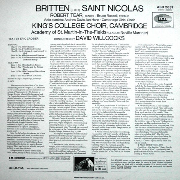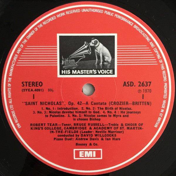 Benjamin Britten, Robert Tear, Bruce Russell , The King's College Choir Of Cambridge, Cambridge Girls' Choir, The Academy Of St. Martin-in-the-Fields, David Willcocks - Saint Nicolas (LP, Album, RE)