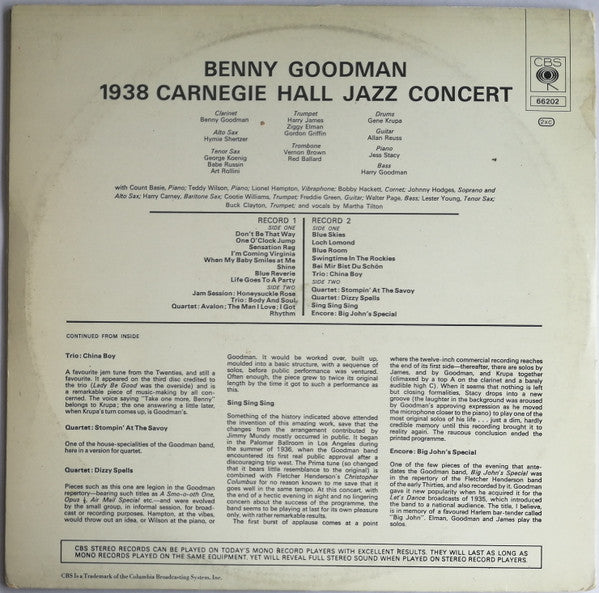 Benny Goodman - The Famous 1938 Carnegie Hall Jazz Concert (2xLP, Album, RE, Gat)