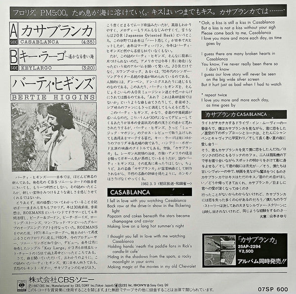Record comes in white/orange color CBS/Sony paper sleeve. Includes picture/lyrics insert.
