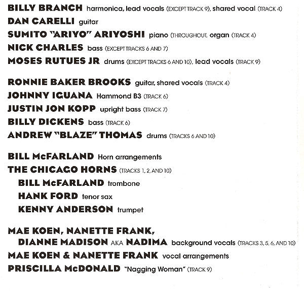 Tracks 1, 3, 6, 7, 9 to 11 published by Viper Music obo Billy Branch Music, BMI.