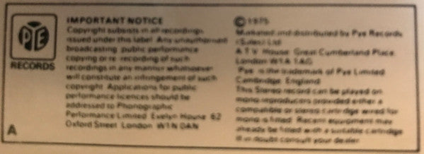 Distributed By Pye Records (Sales) Ltd.