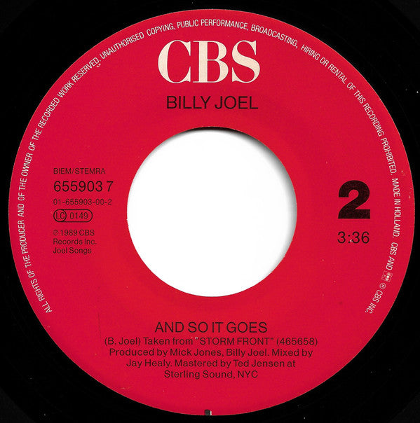 Distributed By CBS Records Phonographic Copyright (p) CBS Records Inc. Copyright (c) CBS Records Inc. Published By Joel Songs Mastered At Sterling Sound Pressed By CBS, Haarlem