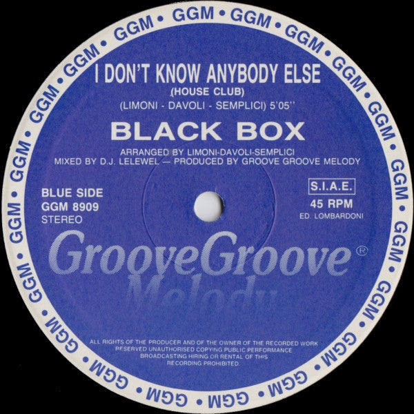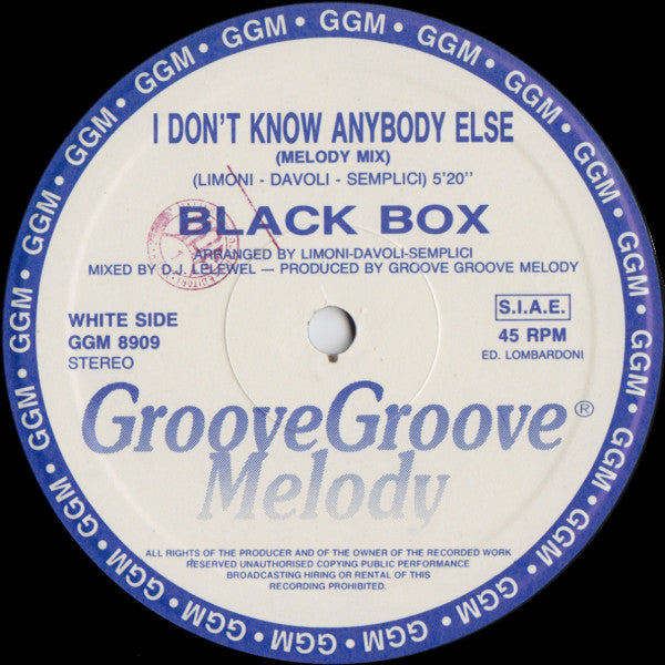 . White Side A. I Don't Know Anybody Else (Melody Mix) 6:34. Blue Side B. I Don't Know Anybody Else (House Club) 6:15