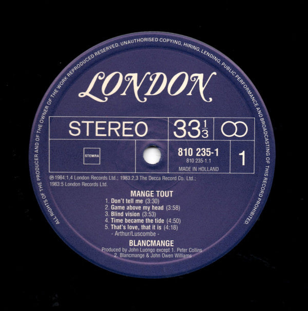Recorded at Marcus Music, London and Sigma Sound, New York City, august-november 1983.